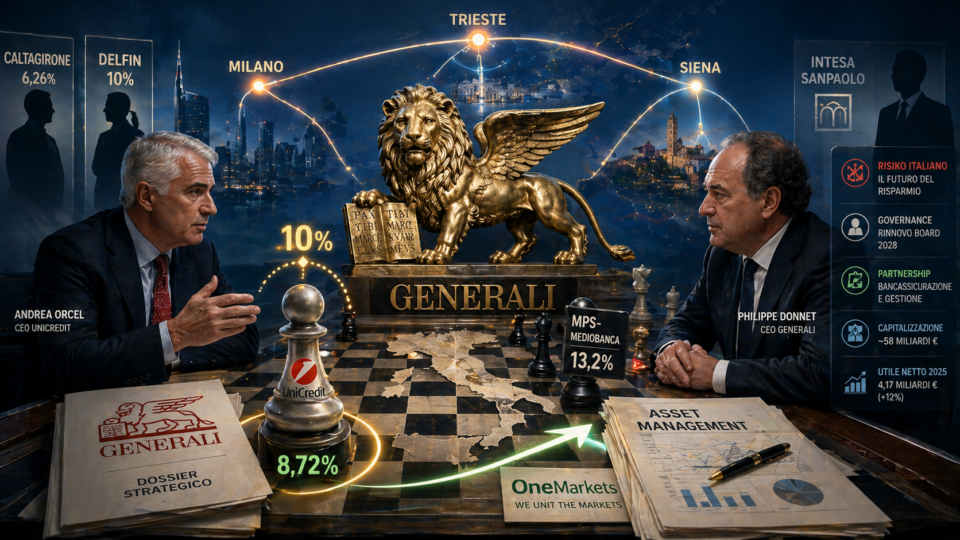 Dopo il caos di Siena, il ritorno di Luigi Lovaglio alla guida di Mps, il peso di Mediobanca nel capitale del Leone, le incognite su Delfin e le ambizioni di Caltagirone, Generali è diventata il crocevia di troppe partite contemporanee. In questo scenario, UniCredit non vuole subire le mosse degli altri. Vuole esserci.