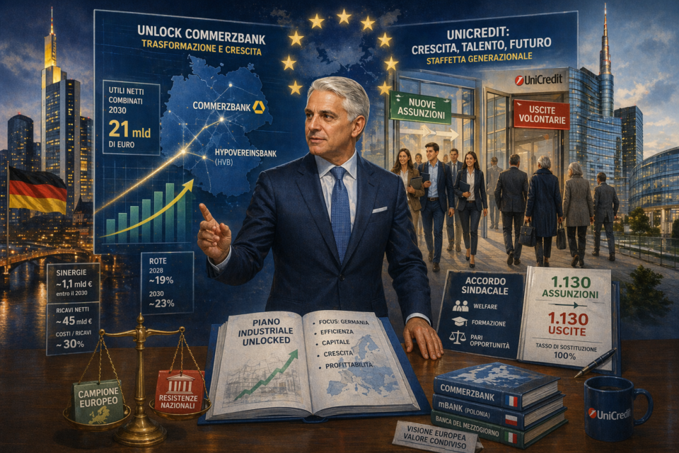 Questo doppio binario è forse l’aspetto più interessante del momento UniCredit. Da una parte c’è la proiezione massima di Orcel, che vuole riscrivere la mappa bancaria europea partendo dalla Germania. Dall’altra c’è la gestione concreta della banca, fatta di piani di esodo, nuove assunzioni, capitale da allocare, dividendi, buyback e relazioni sindacali. Sono due livelli diversi, ma non separati. Perché una banca che si candida a diventare campione paneuropeo deve anche dimostrare di saper reggere l’impatto sociale e organizzativo delle proprie scelte.